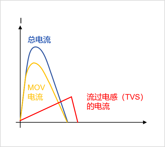 增加次級TVS我們期望達到比初級MOV更低殘壓,如果不串電感,MOV與TVS完全并聯(lián),TVS響應(yīng)比MOV快,殘壓比MOV低,浪涌電流主要通過TVS,TVS很容易超過規(guī)格書標稱的IPP,因而發(fā)熱損壞(當然TVS也可以選擇更大的IPP但是成本增加是一定的)。為了解決這個問題我們需要串入電感。