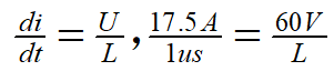 ,電感的電流變化率應(yīng)該小于17.5A/μs(圖3)。