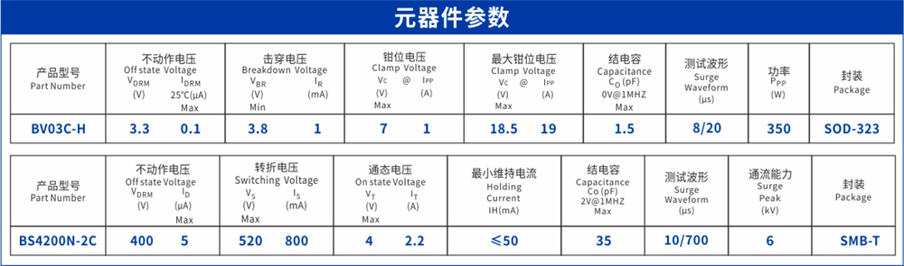 正如上述千兆網(wǎng)口防護解決方案,第一級防護,檳城電子推薦使用二合一封裝的BS4200N-2C,該器件既能保證殘壓較低的同時又可以承受較高的工頻耐壓,滿足ITU-T K.21 IEC6100-4-5等標準測試要求,并支持對地AC230V電力線搭接。通過使用BS4200N-2C進行共模防護,將浪涌電流引流至大地,防止大浪涌能量傳遞到后級設(shè)備,從而確保前級防護的安全性。測試量級可滿足共模(CM)6kV 42Ω@1.2/50-8/20μs和6kV 40Ω@10/700-5/320μs;差模(DM)2.5kV 10Ω@1.2/50-8/20μs和1.5kV 40Ω@10/700-5/320μs。此外,BS4200N-2C的二合一封裝能夠有效減小占板面積,節(jié)省PCB空間。