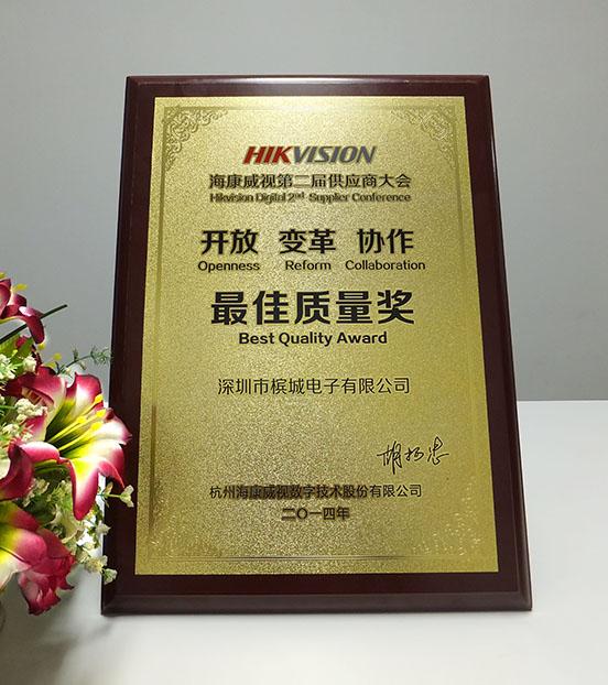 2014年,檳城電子憑借優(yōu)質(zhì)的產(chǎn)品和完善的服務(wù),在海康威視的供應(yīng)商大會(huì)上喜獲“最佳質(zhì)量獎(jiǎng)”的榮譽(yù),這對(duì)一直在努力的檳城人是一個(gè)莫大的鼓舞,我們的汗水沒有白流,我們付出得到了收獲,全體檳城人將再接再厲,創(chuàng)造出更加美好的明天!