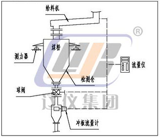 干燥的散裝固體物料自由落體沖擊到傳感檢測(cè)板(沖板)上后,傳感檢測(cè)板產(chǎn)生機(jī)械偏移。然后散裝物料流連續(xù)而無阻礙的通過。即:由于沖擊力與傳感檢測(cè)板具有一定角度,故該力分解成一個(gè)水平分力和一個(gè)垂直分力。垂直分力由變送器的機(jī)械結(jié)構(gòu)克服而不起作用,而水平分力有一個(gè)差動(dòng)傳感器(線性可調(diào)差動(dòng)變送器),這個(gè)信號(hào)經(jīng)與之相連的積算儀檢測(cè)和處理,得出瞬時(shí)流量和累積流量。