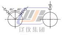 V錐流量計(jì)的安裝與孔板類似,導(dǎo)壓孔的位置如圖5,6所示: